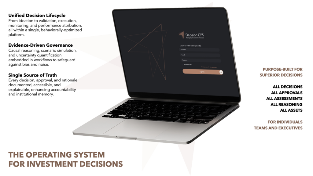 At Panthera, we have dedicated over a decade to creating an environment that helps executives and specialists answer precisely that, rationally and consistently. As a deep-tech pioneer in Decision Intelligence, we have sourced, assembled, and integrated High-Performance Principles from multiple sciences into a unifying framework, an operating system for investment decisions: The Decision GPS